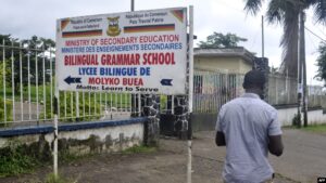 Panneau d’entrée d’une école bilingue dans la région du sud-ouest du Cameroun.