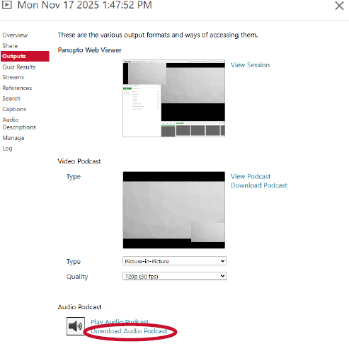 - At the bottom, select Download Audio Podcast