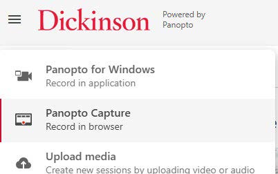 - Click Create in the top left and select Panopto Capture
