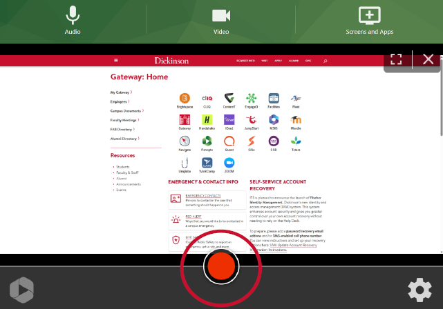 - If you’re only recording your screen, remember to select Audio, and click the checkmark so that it turns to an “X” to ensure your voice won’t be captured