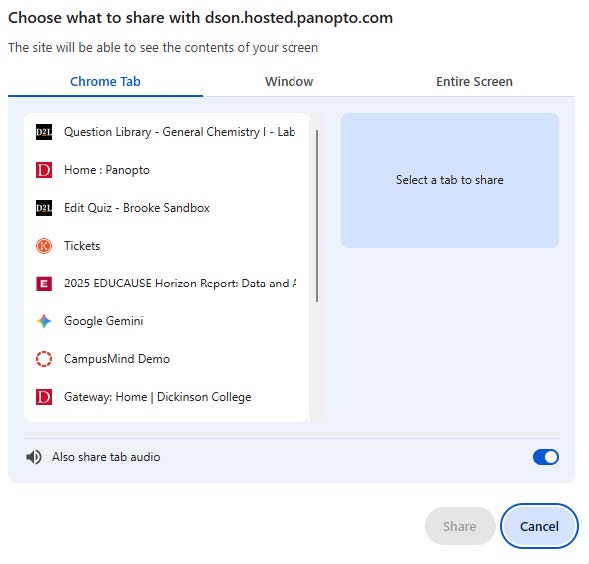 - Select the tab or window you want to record