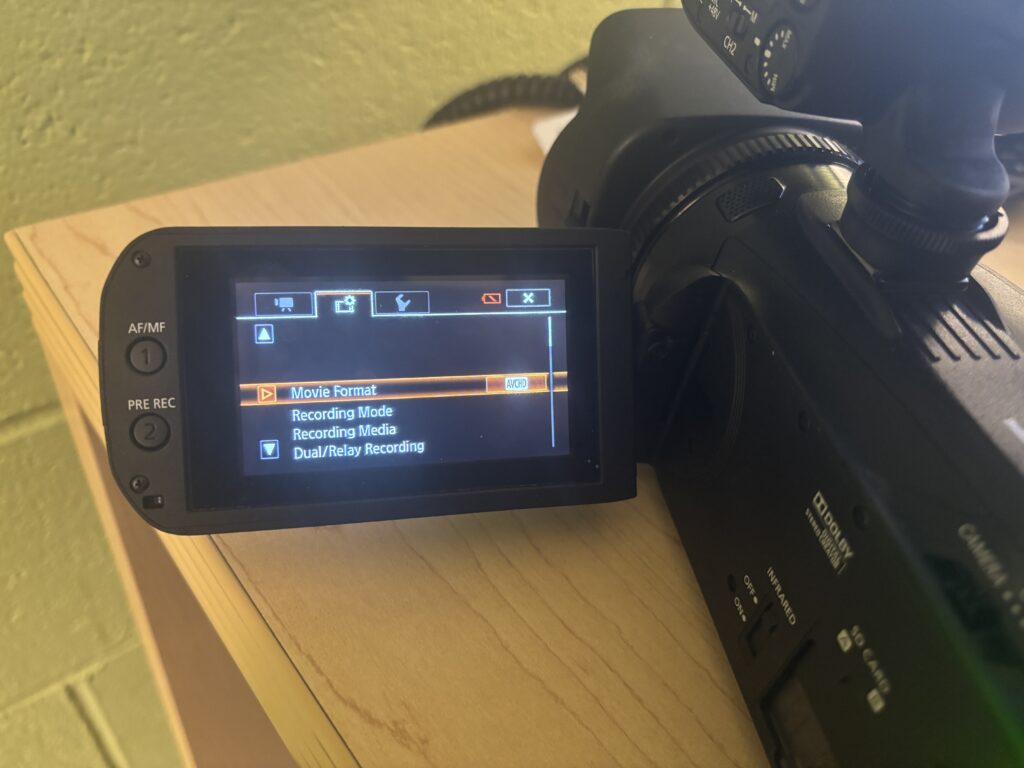 The Canon XA11 allows you to select your desired recording format before you start recording. By default, it may record as an mp4 file. This is fine as long as what you’re recording is less than 30 minutes.